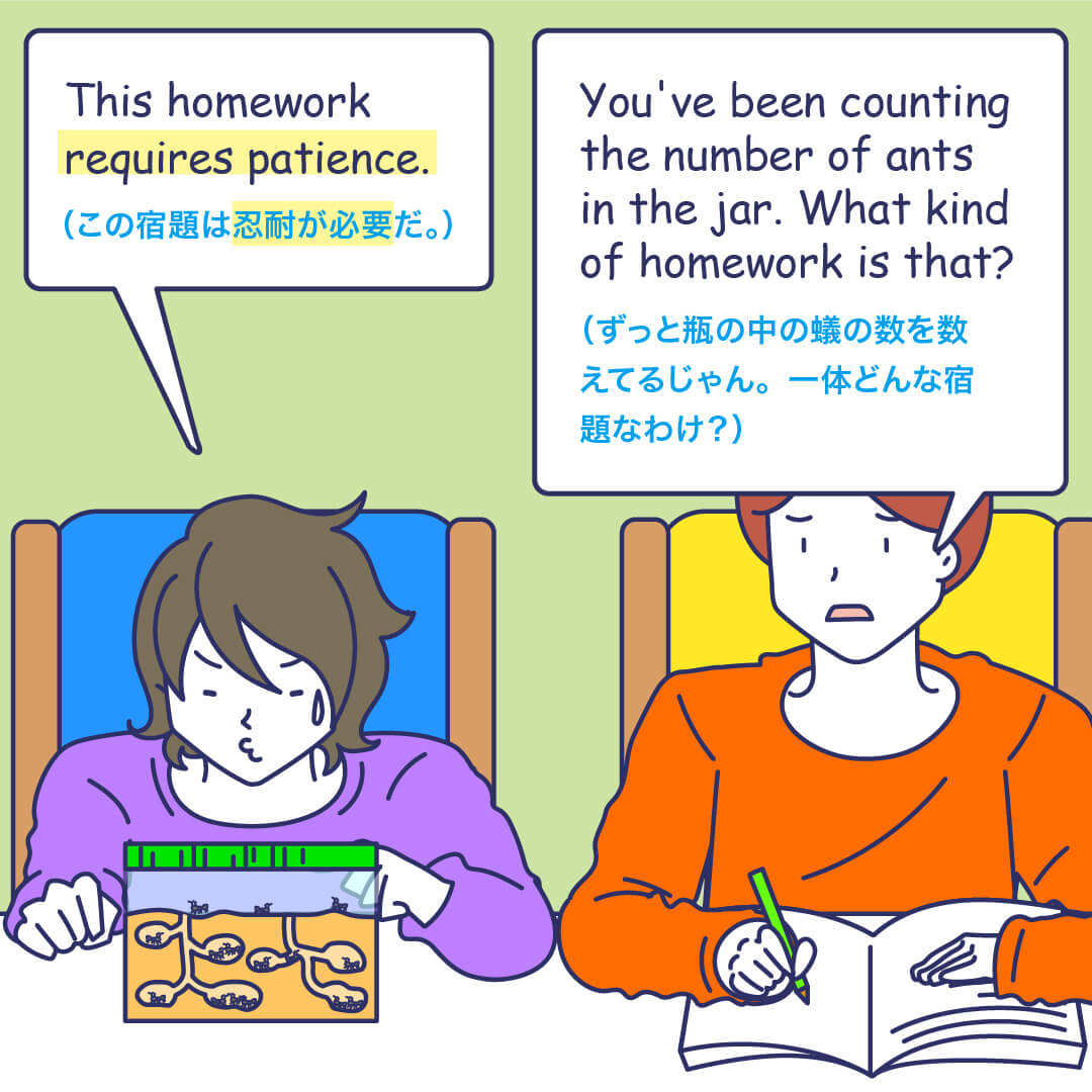 almost a perfect scoreなどでもOKです。「忍耐が必要」英語でなんて言う?