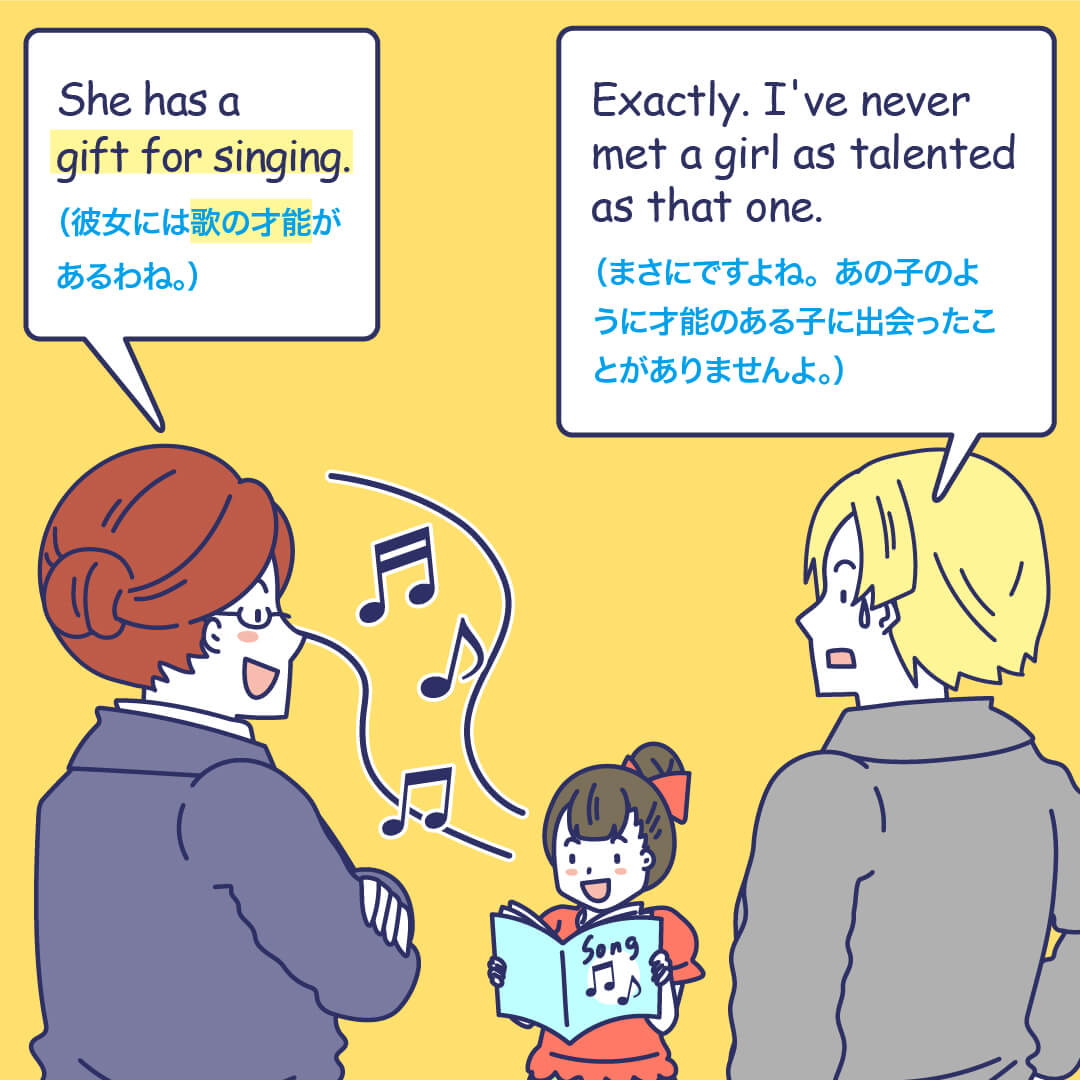 giftは「才能」という意味でも使います。talentedもしくはgiftedで「才能がある」という意味です。