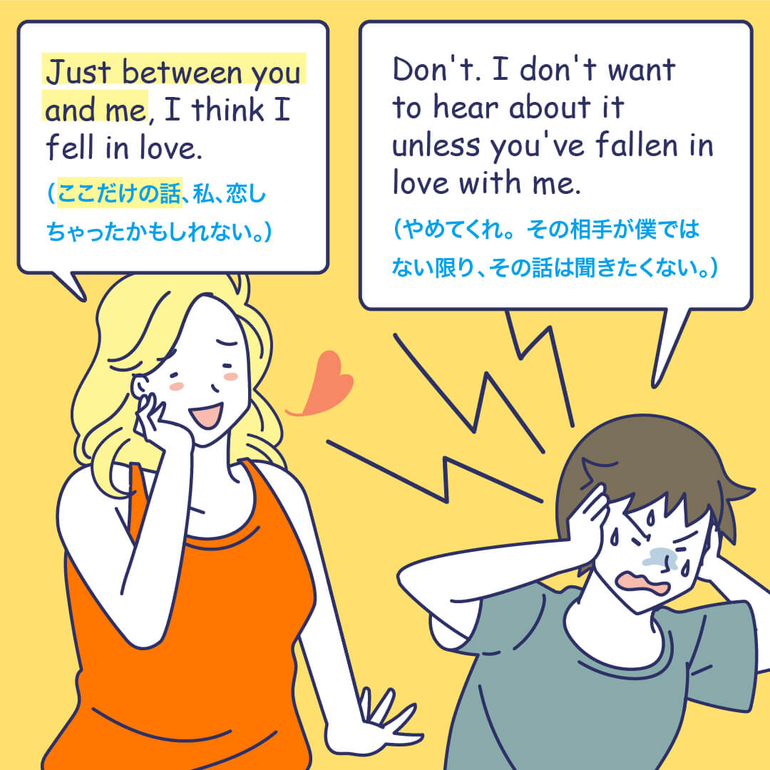冒頭のJustを省略してBetween you and meと切り出してもOKです。「疑いの余地はない」英語でなんて言う?