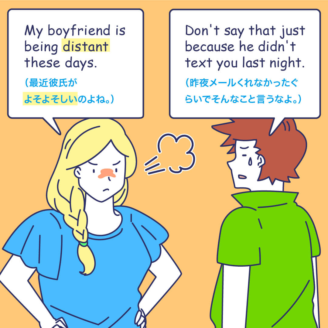 distantで「よそよそしい」です。時間的に遠い場合にも使う単語です。