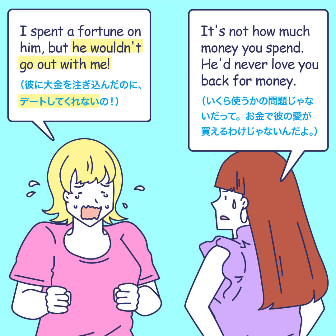 spend a fortune on〜で「〜に大金を注ぎ込む」です。in shortってどういう意味?