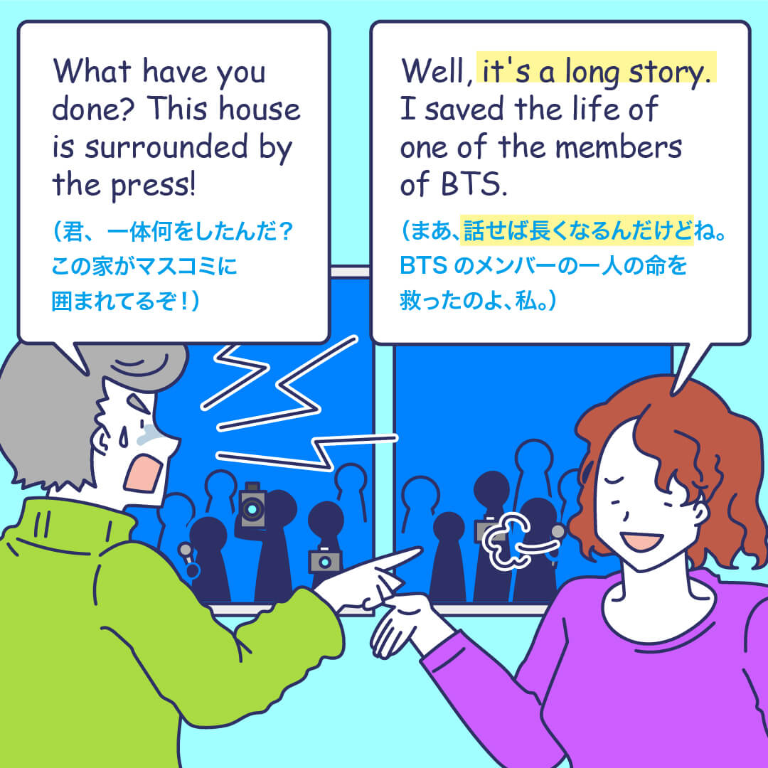 - 「話せば長くなるんだけど」英語でなんて言う?