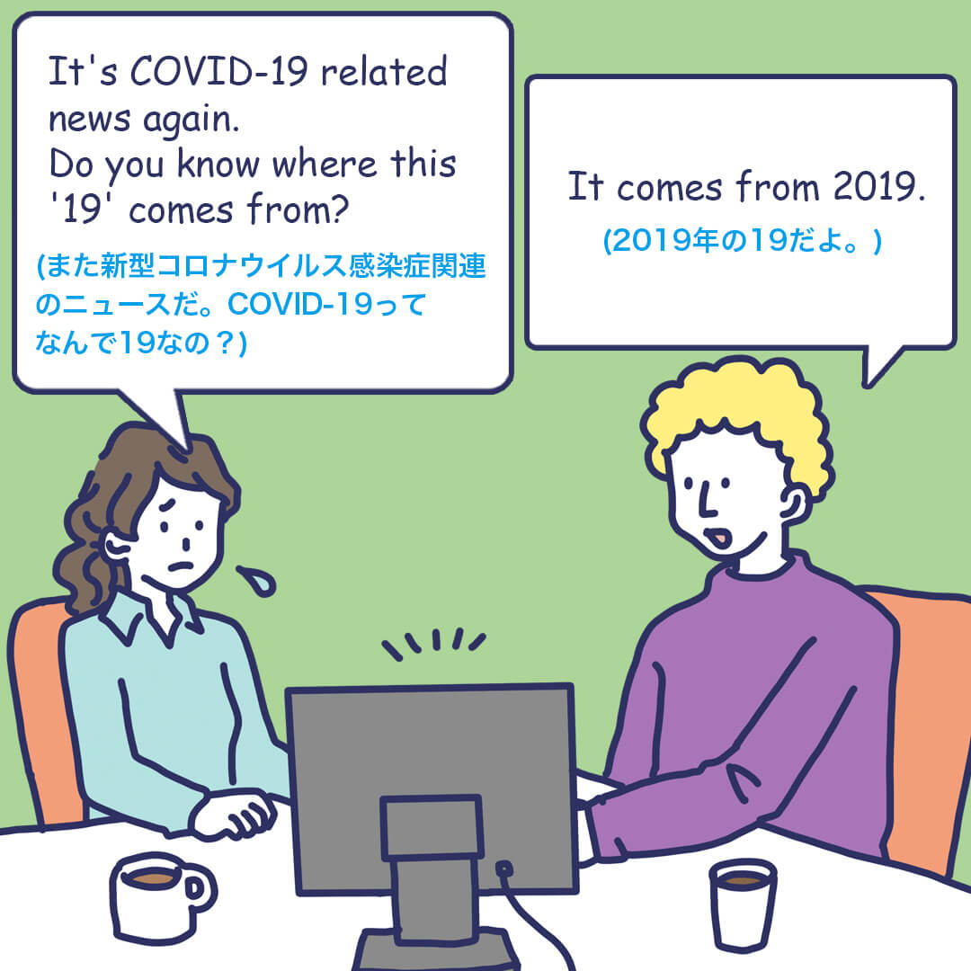 「新型コロナウイルス感染症」は英語では’COVID-19’と言います。