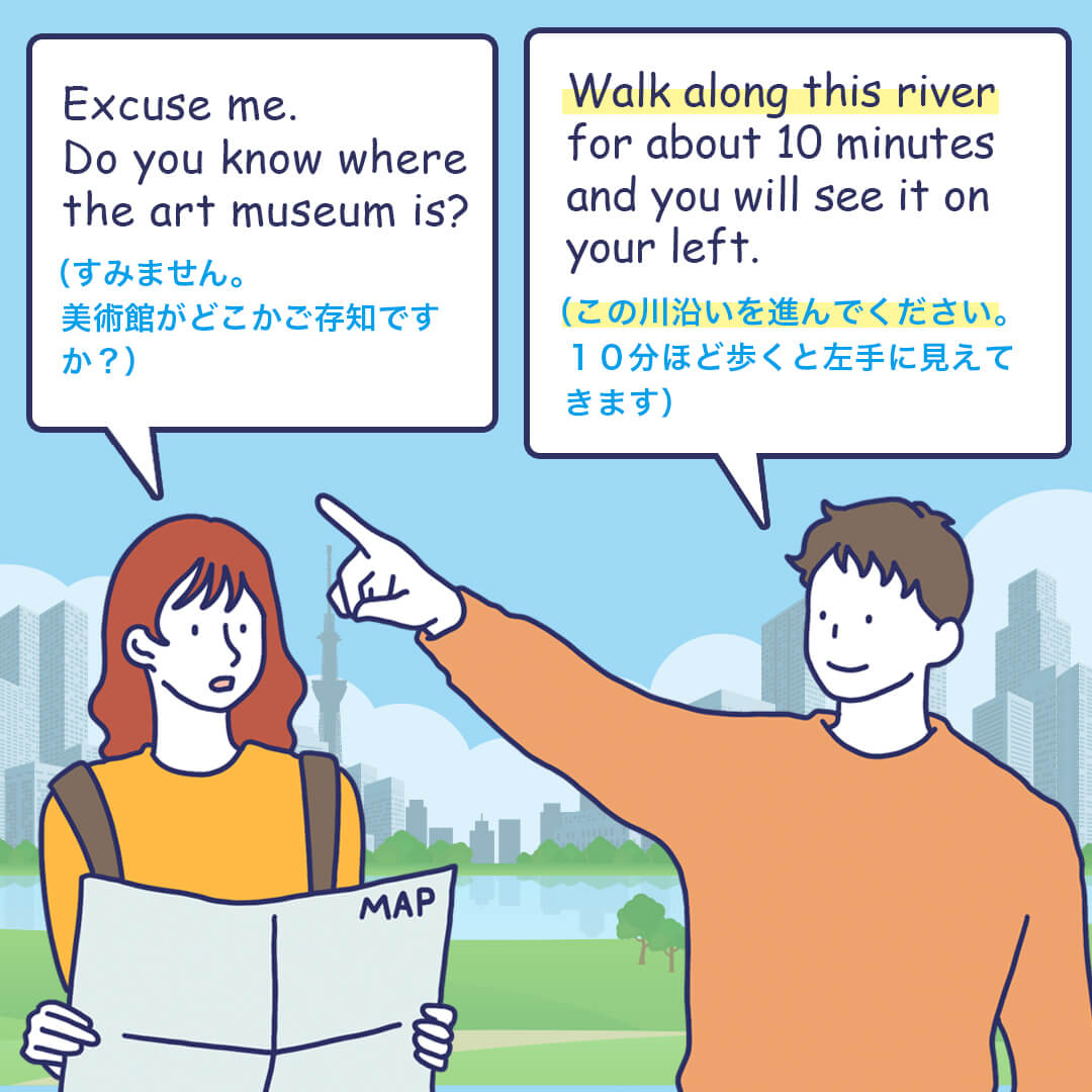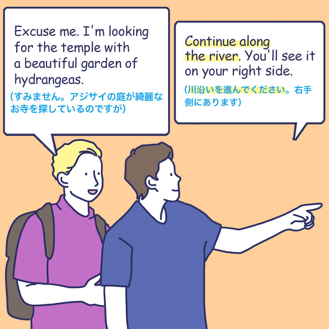 - 突然の道案内「川沿いを進んでください」英語でなんて言う?