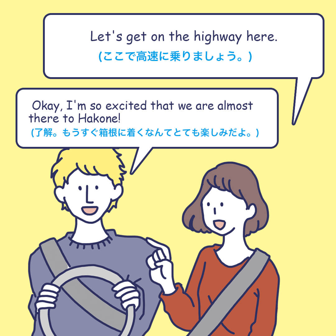 ちなみに、「高速に乗る」は’get off the expressway’といいます。