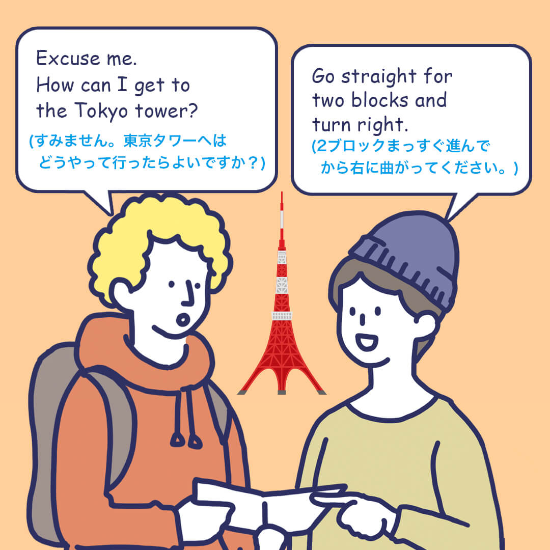 突然の道案内。「2ブロックまっすぐ進んでから右に曲がってください」って英語でなんて言う?