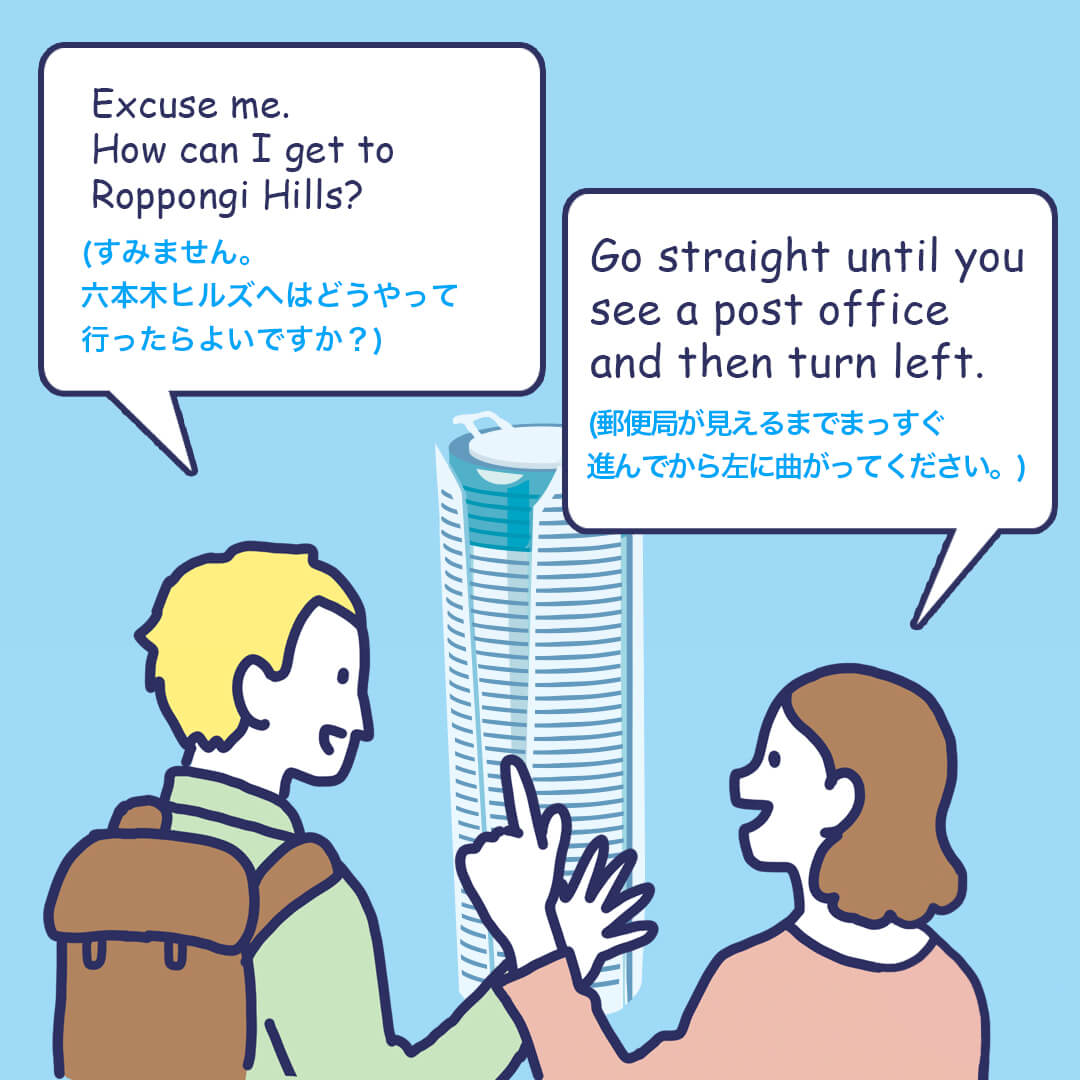 突然の道案内。「郵便局が見えるまでまっすぐ進んでください」って英語でなんて言う?