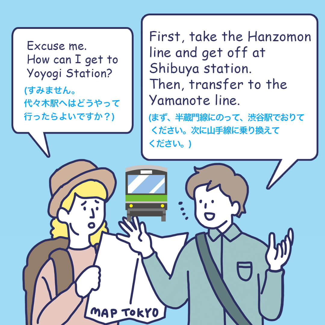 突然の道案内。「半蔵門線に乗って、渋谷で山手線に乗り換えて」って英語でなんて言う?