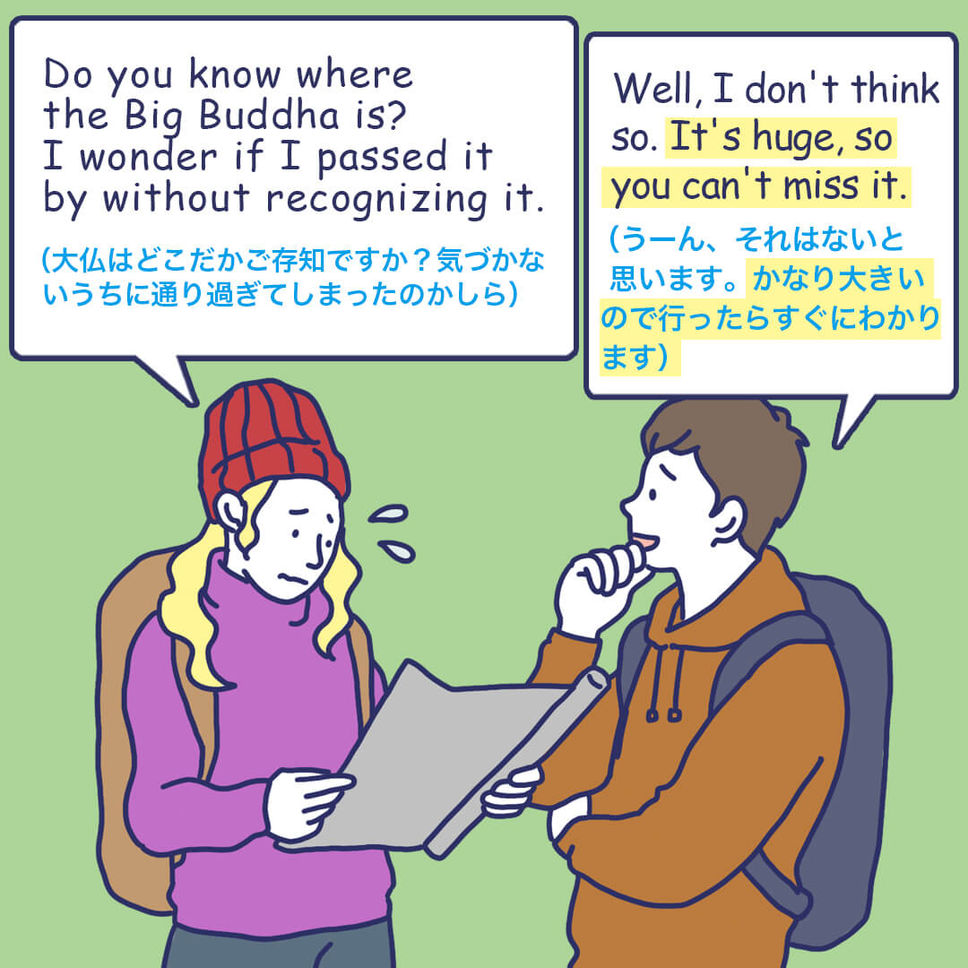 - 大仏はどこ?「かなり大きいので行ったらすぐにわかります」英語でなんて言う?