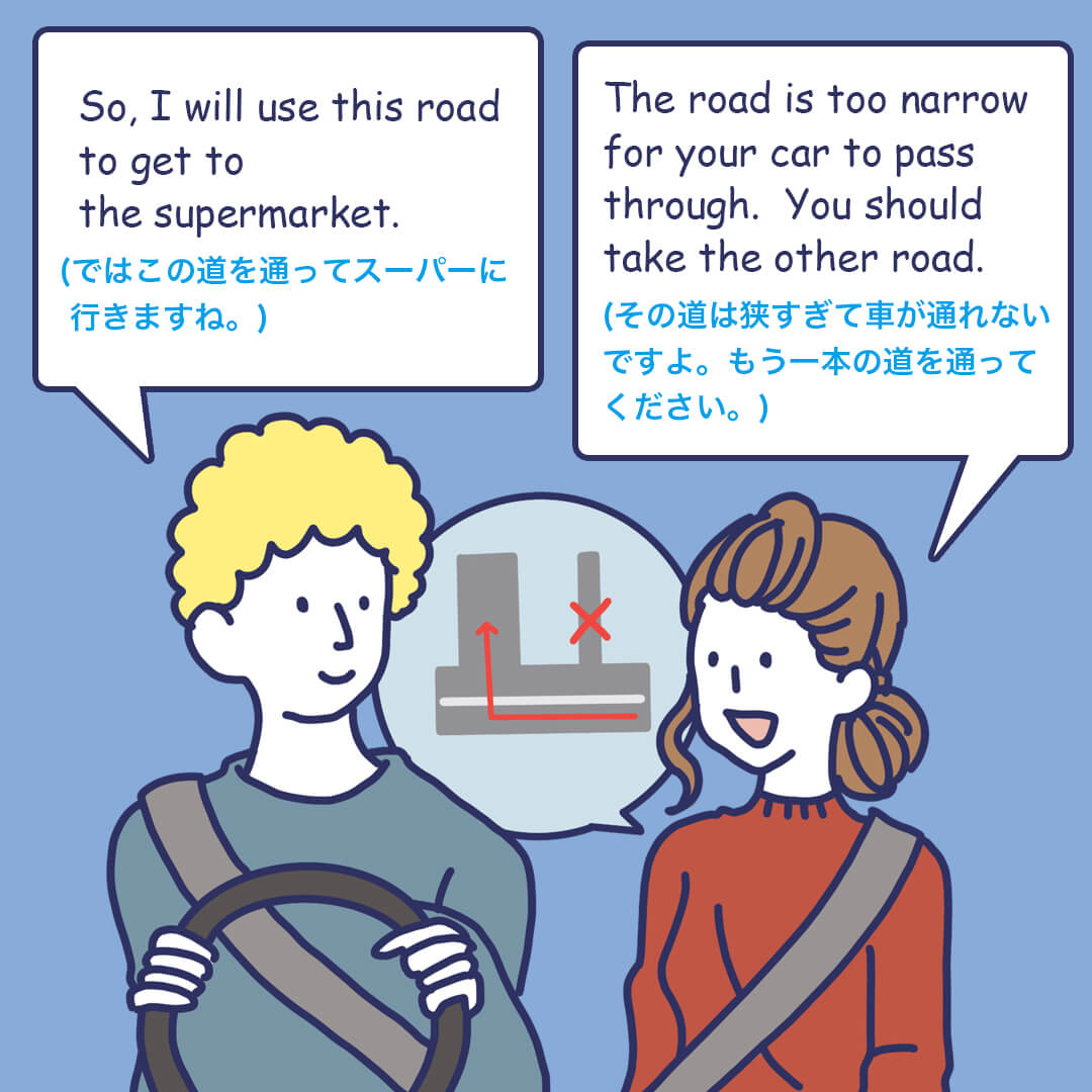 - 「その道は狭すぎて車が通れない。」英語でなんていう?