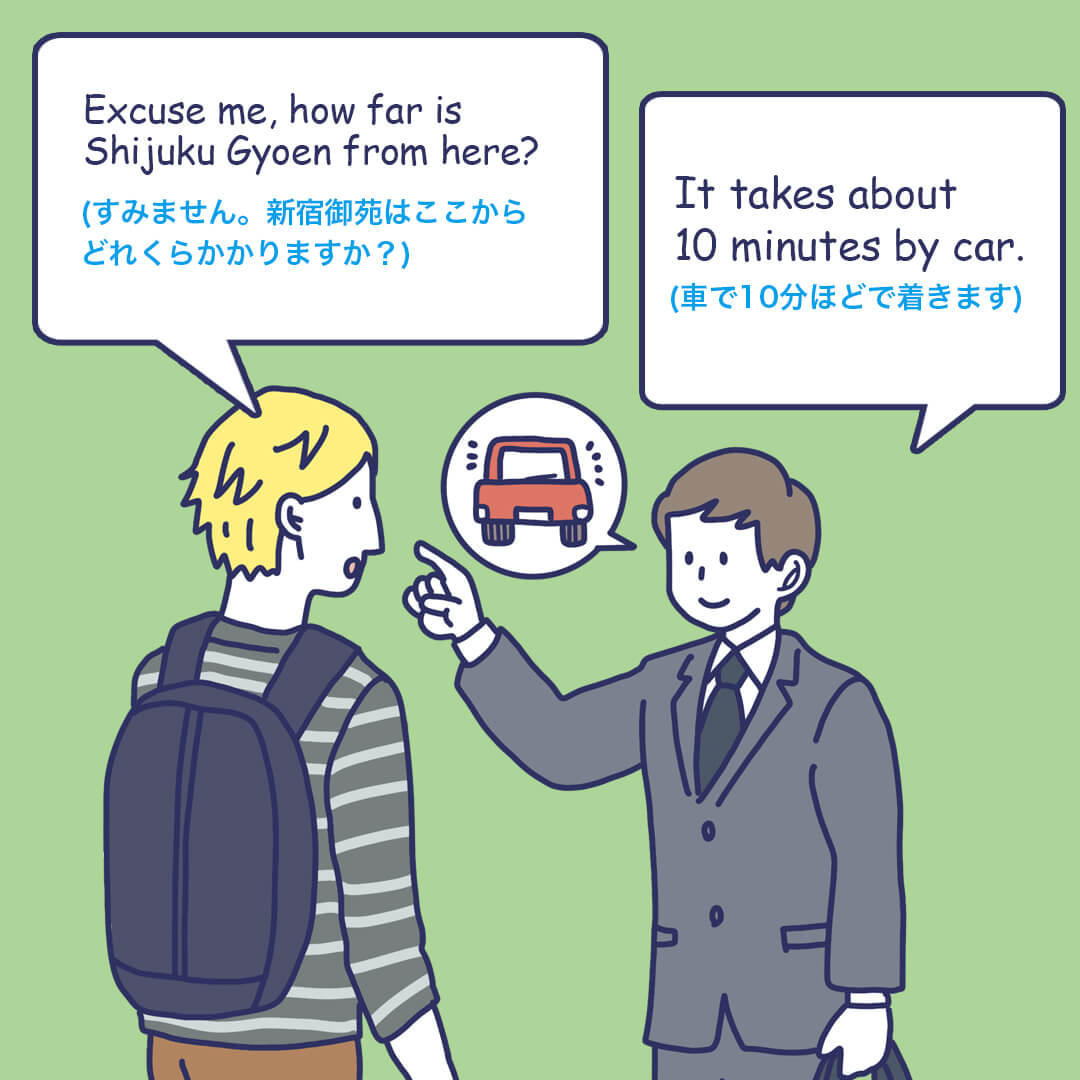 突然の道案内。「車で10分ほどで着きます。」って英語でなんて言う?