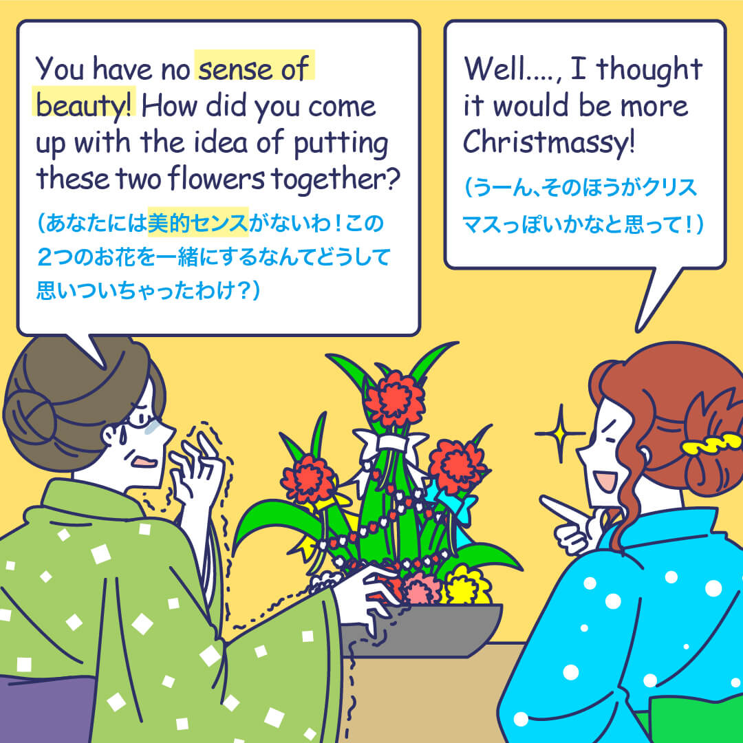 「美的センス」はsense of beautyなどと言ったりします。Christmassyで「クリスマスっぽい」です!