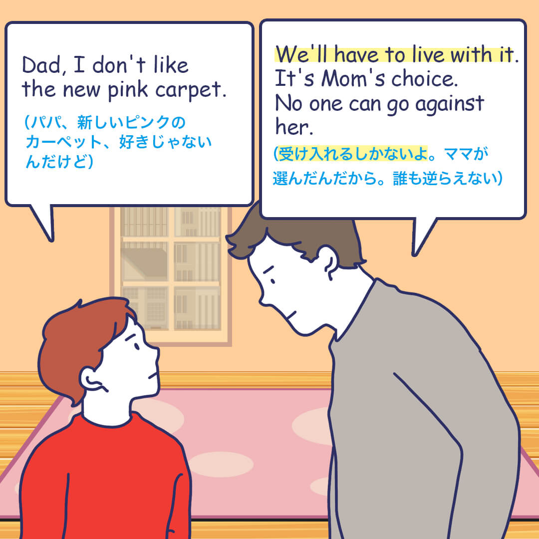 live with 〜は〜を受け入れる、我慢するという意味です。文脈によっては、文字通り「それと暮らす」という意味でも使えます。