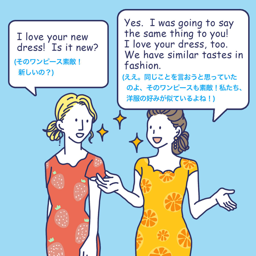 - 「私たち、洋服の好みが似ているよね!」英語でなんて言う?