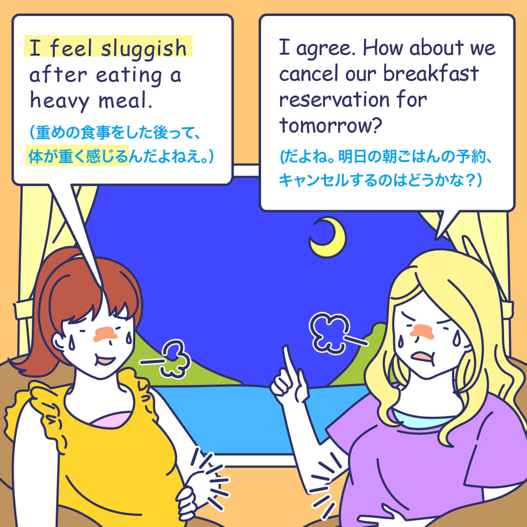 feel sluggishで「体が重く感じる」「かったるい」などの意味があります。