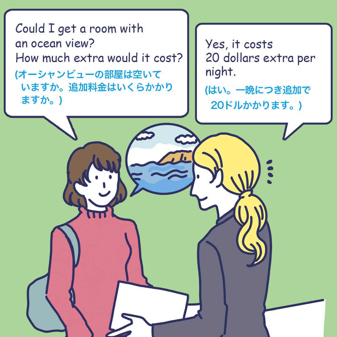 「オーシャンビューの部屋は空いていますか。」英語でなんて言う?