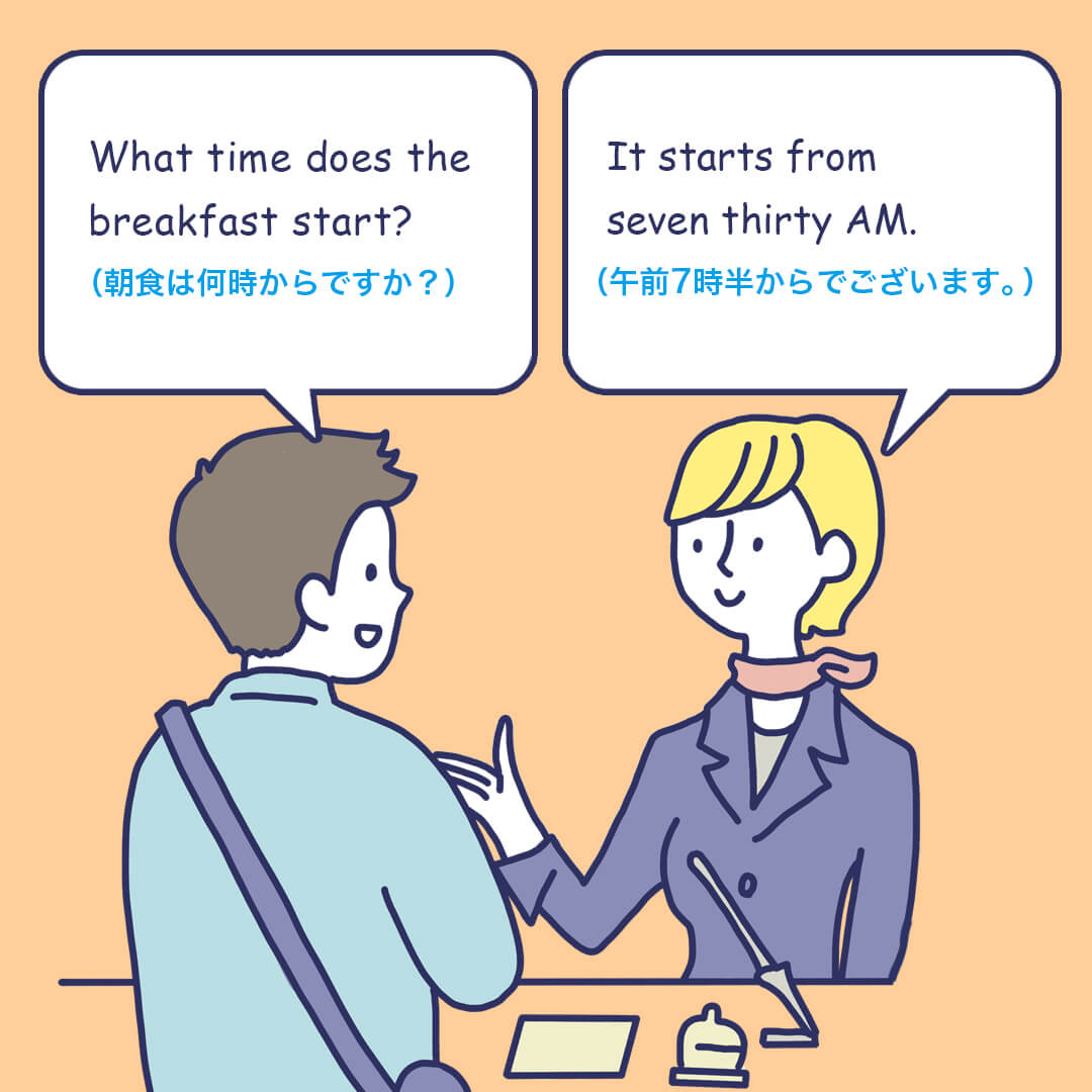 ホテルの方の説明が早すぎて聞き取れなかった場合は、 When was the breakfast again? (朝食何時でしたっけ?)と聞けるとスマートですね♪