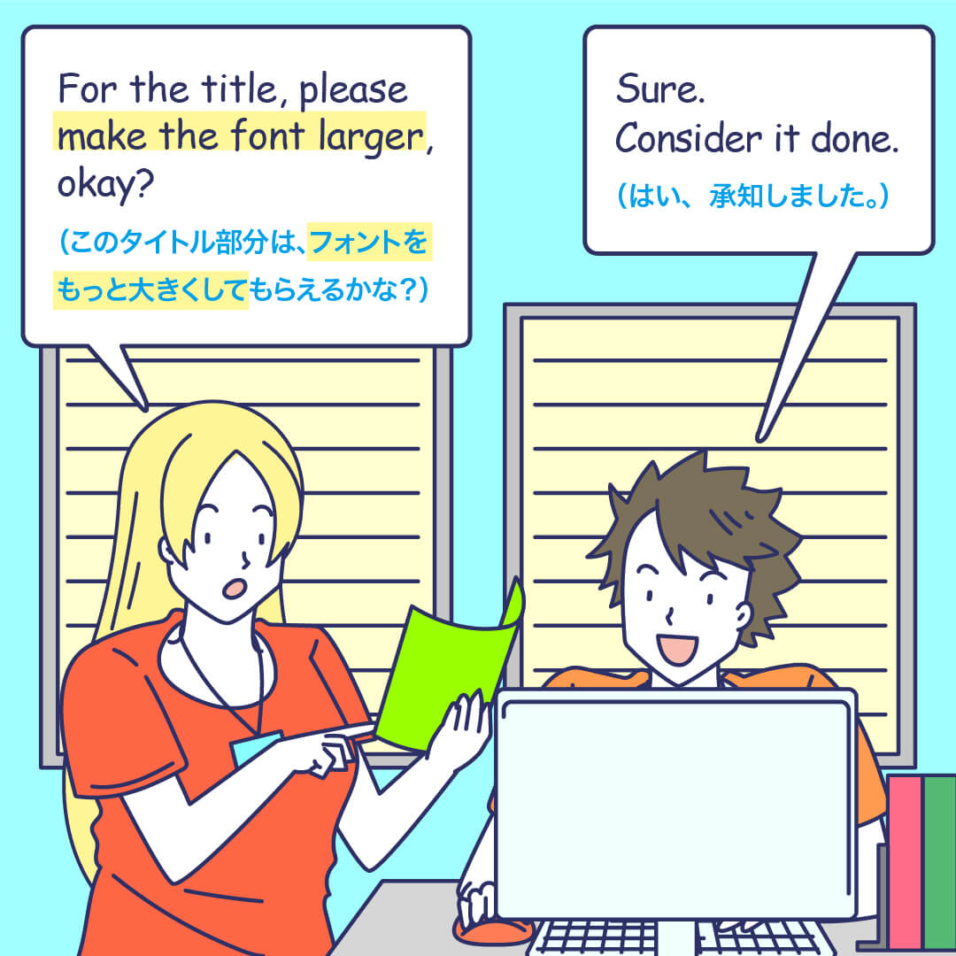 注意したいのはこのフレーズで頼み事をされたときに「いいよ!」と答える場合は