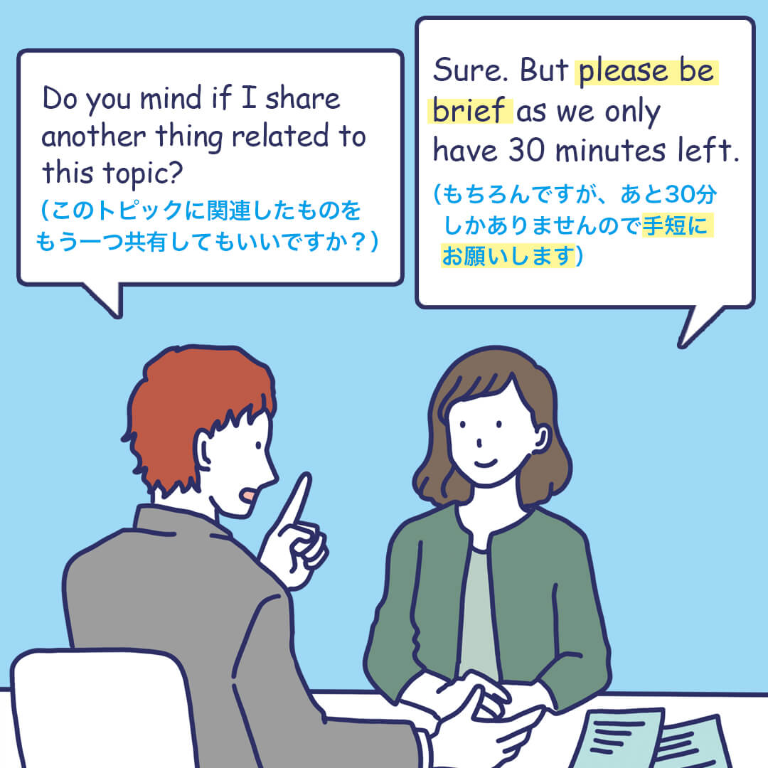 「手短にお願いします」他にはPlease keep it short.などがあります。briefは「短い/簡潔な」という意味があります。