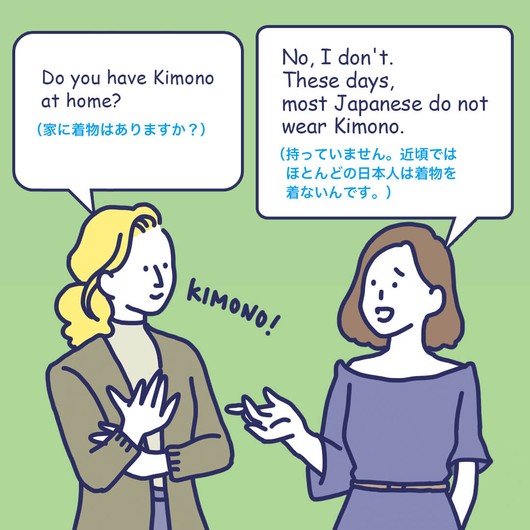 「近頃ではほとんどの日本人は着物を着ないんです。」って英語でなんて言う?
