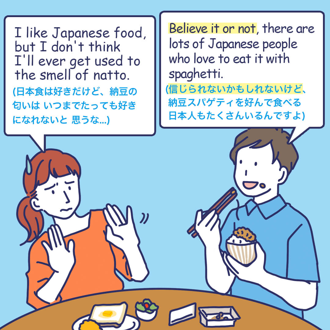 believe it or notで「信じられないかもしれないけど」「信じようと信じまいと」です。