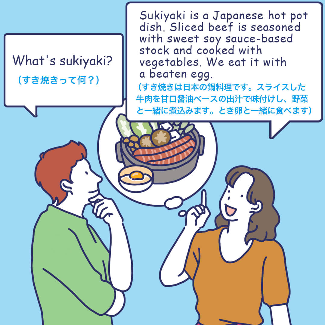 「鍋料理」はhot pot dish、「とき卵」はbeaten eggです。
