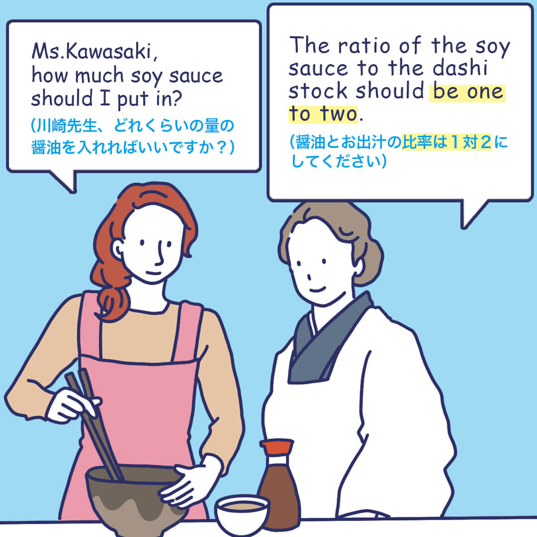 「比率は1対2です」ならThe ratio is one to two.と言います。