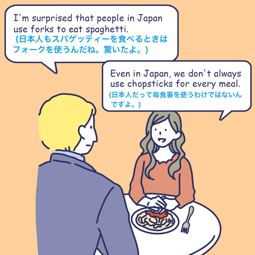 「日本人だって毎食箸を使うわけではないんですよ。」英語でなんていう?