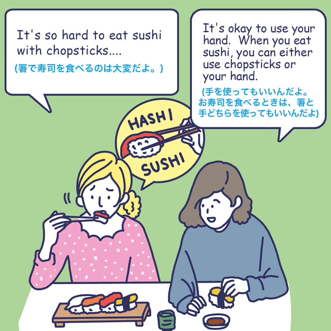 「お寿司を食べるときは手を使っても箸を使っても良い」英語でなんていう?