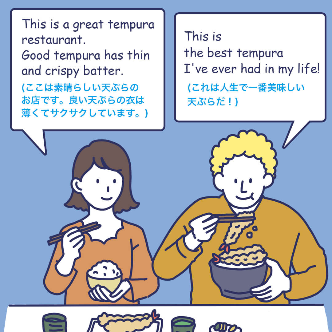 「良い天ぷらの衣は薄くてサクサクしている。」英語でなんていう?