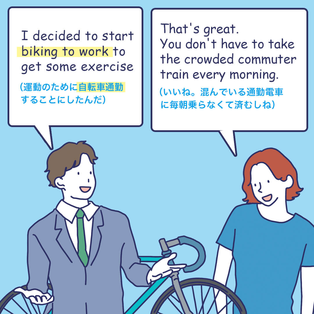 to get some exerciseで「運動のために」、commuter trainで「通勤電車」です。
