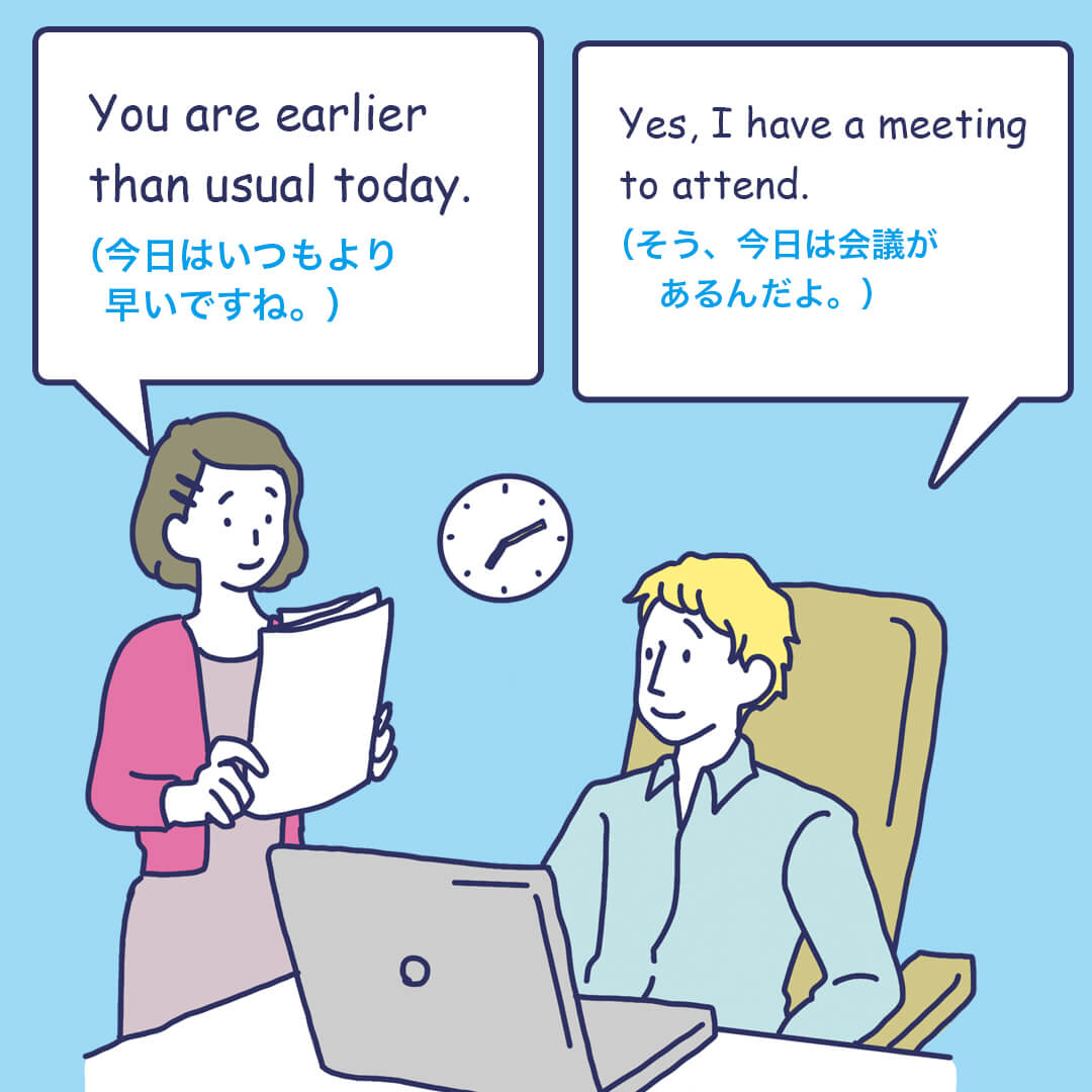 「今日はいつもより出社が早いですね。」って英語でなんて言う?