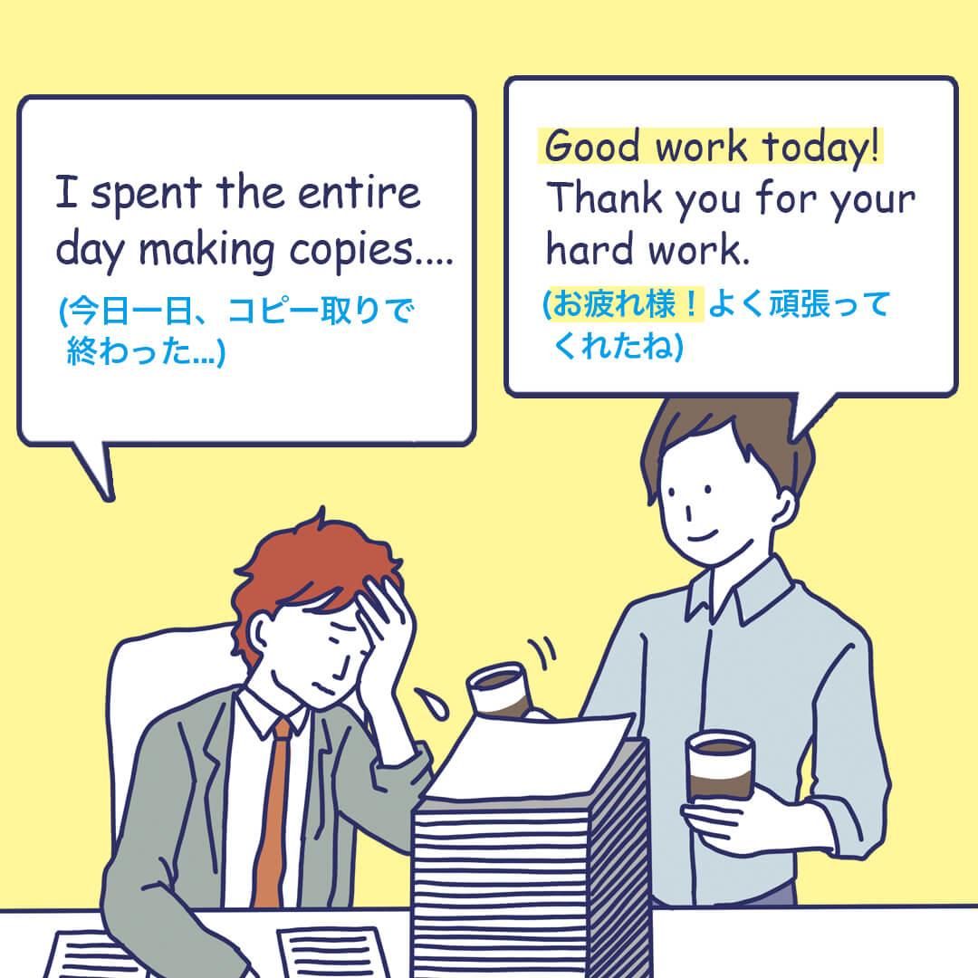 日本語の「お疲れさま」にあたる言葉は英語にはありません。