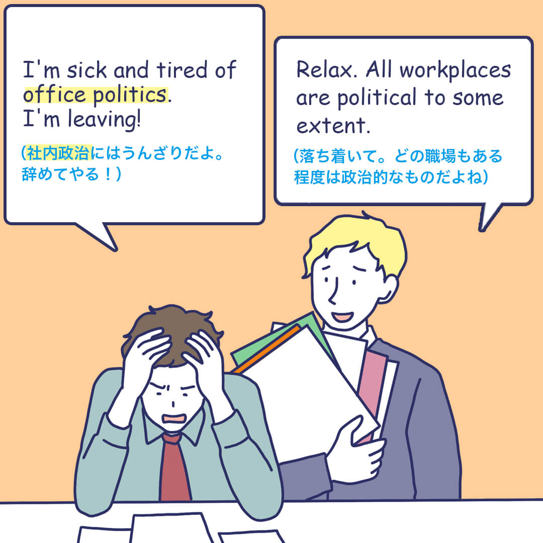「社内政治」はoffice politics / workplace politicsなどと言います。