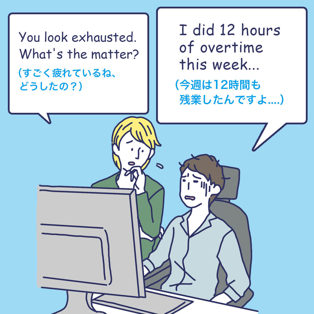 You look exhausted. はYou look tired. よりも更に「ヘトヘト」な場合に使うフレーズです。