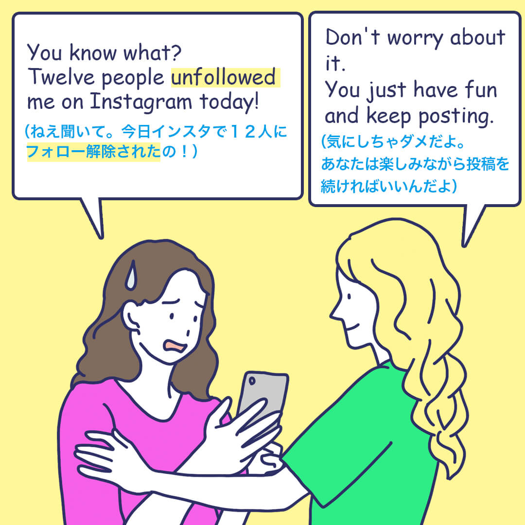 followの反対はunfollowです。「投稿を続ける」はkeep postingです。