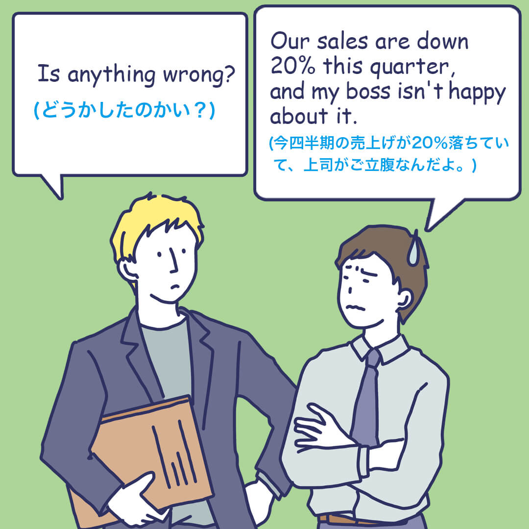例文とは逆に「売上げが20%伸びる」の場合はOur sales are up 20%.
