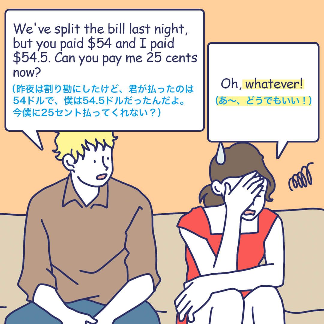 Whateverは「なんでも全て」などの意味ですが、単体で使われると