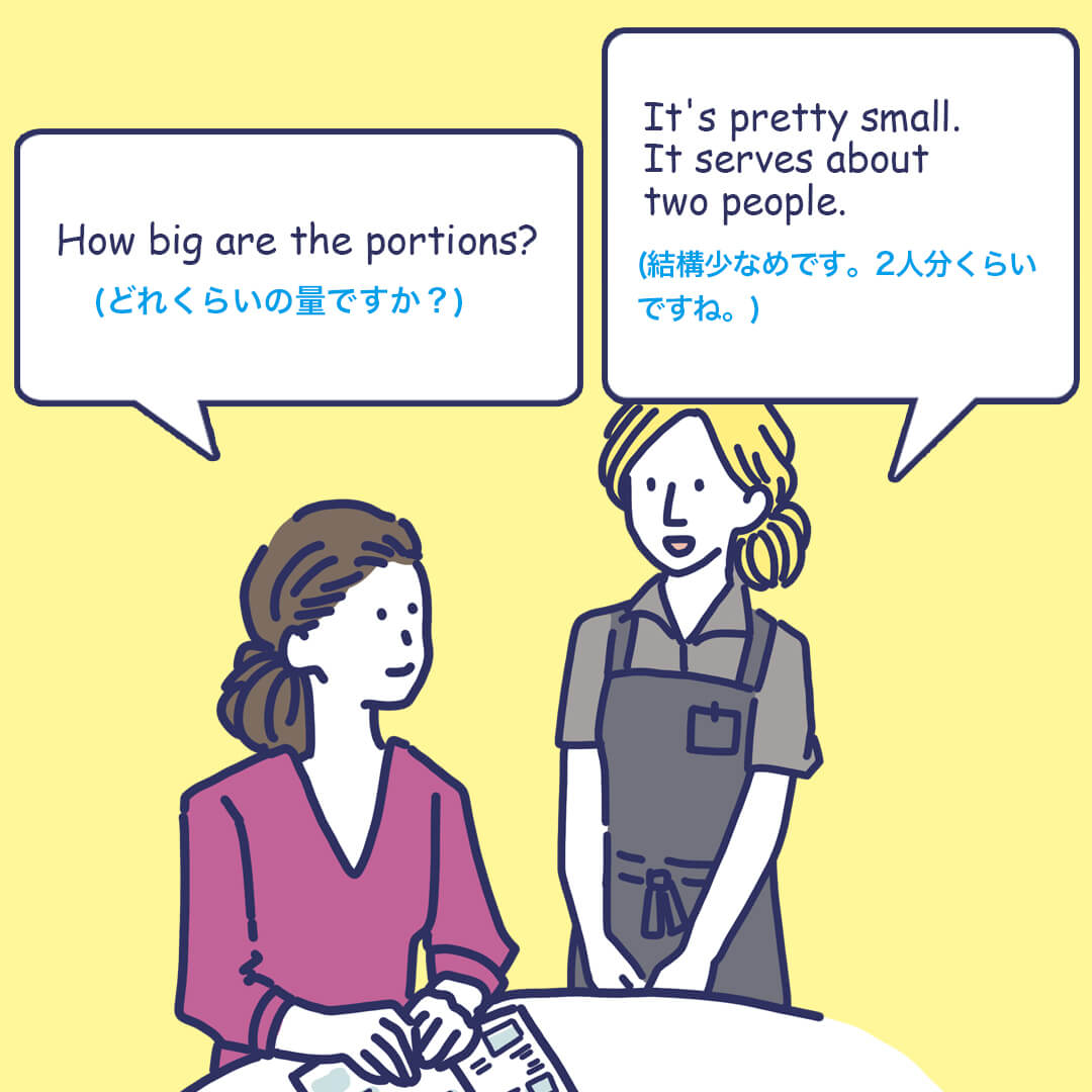 レストランで注文。「どれくらいの量ですか?」英語でなんて言う?