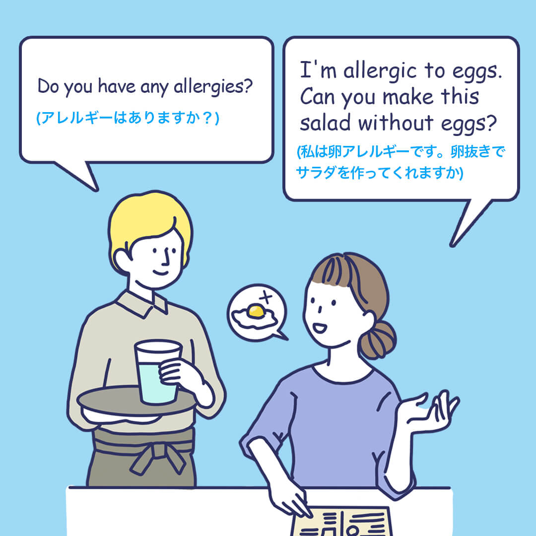 アレルギーのある方はぜひ覚えていただきたいフレーズです。