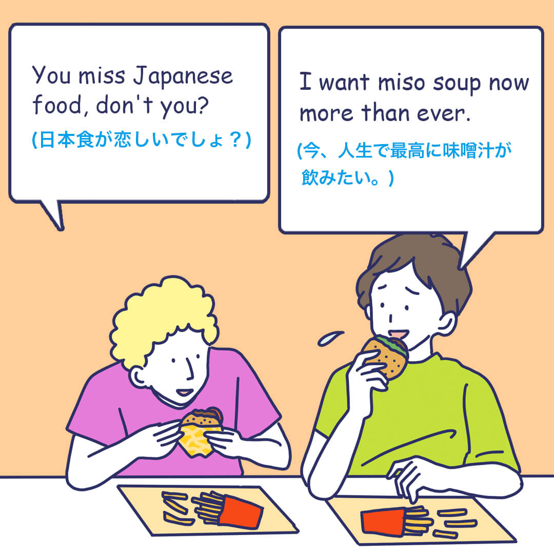 「人生で最高に今味噌汁が飲みたい」英語でなんて言う?