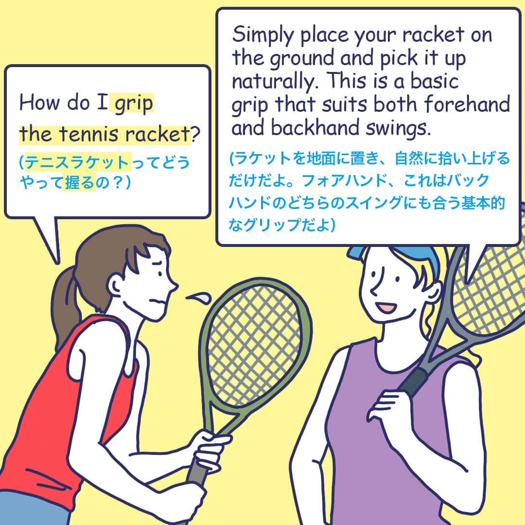 「テニスラケットを握る」英語でなんて言う?