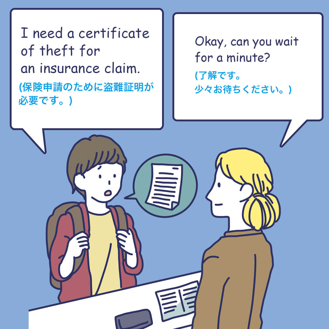 「保険申請のために盗難証明が必要」英語でなんて言う?